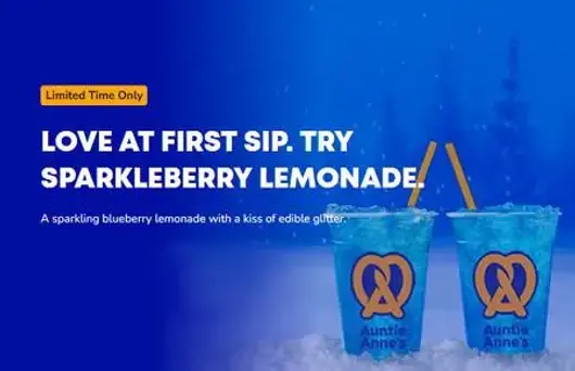 A sparkling blueberry lemonade with a kiss of edible glitter. Try it now!